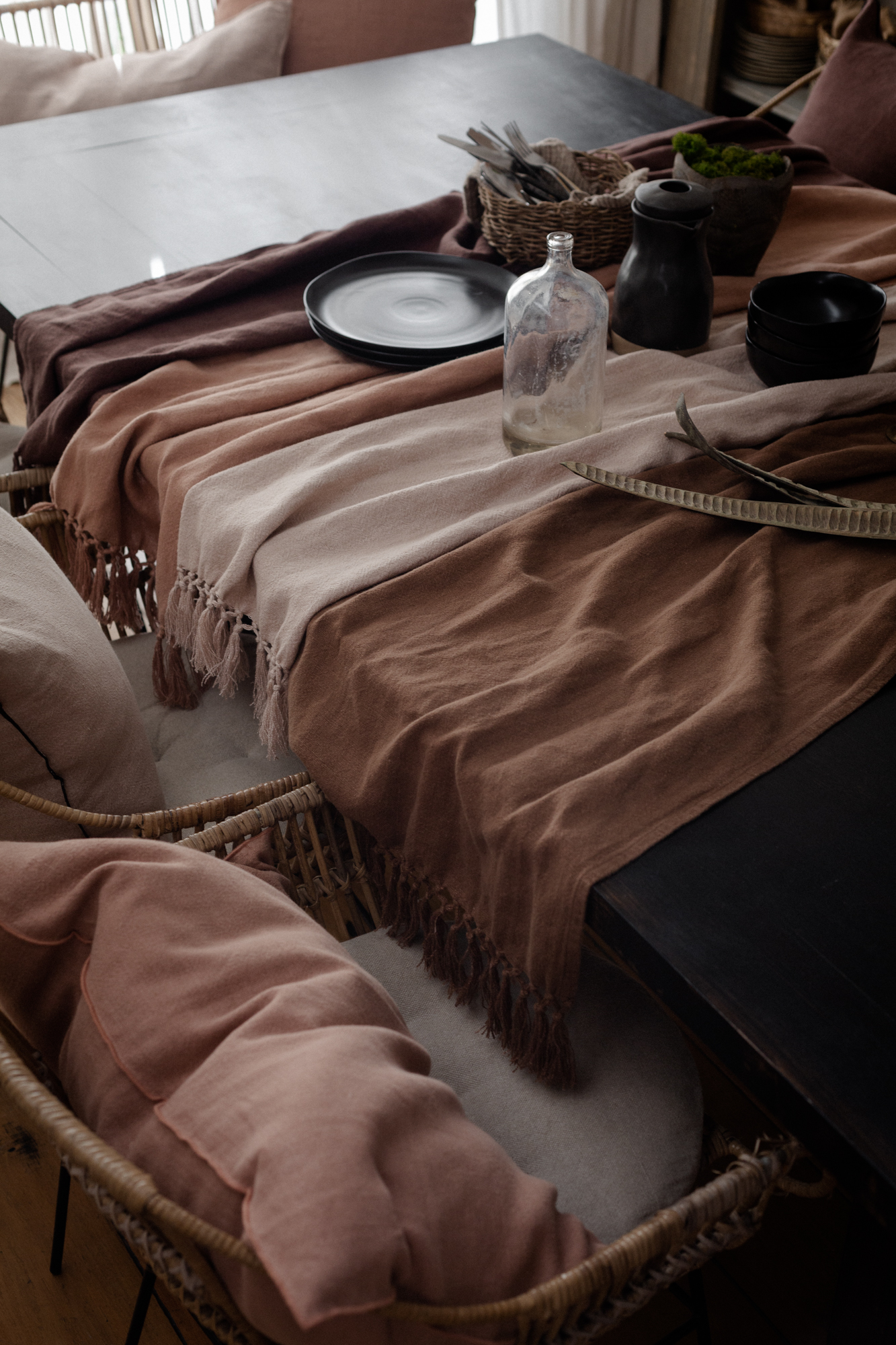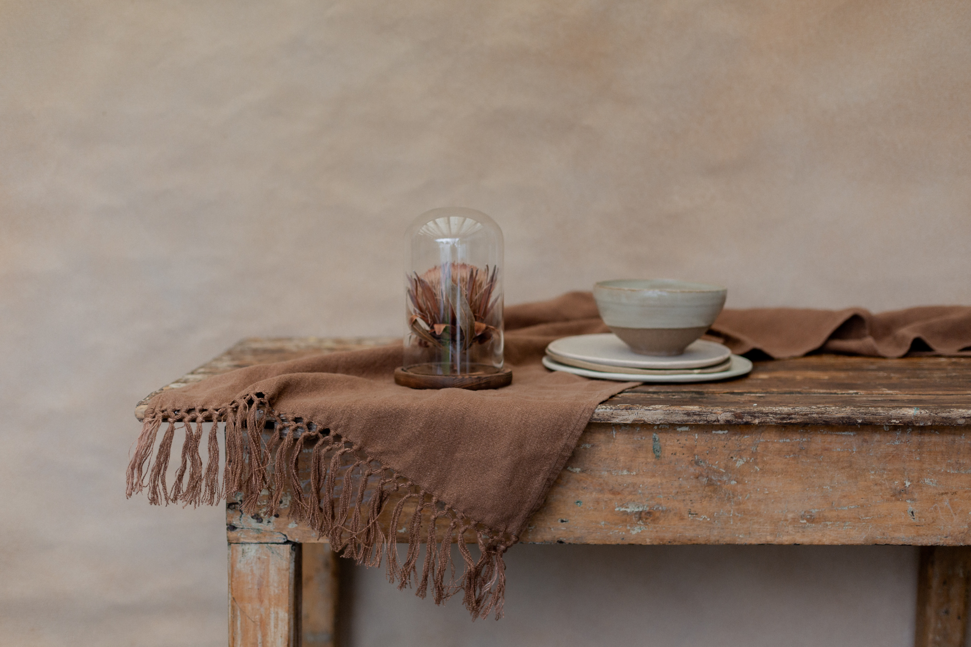 Camino de lino europeo, lavado en piedra y de la más alta calidad. Fue diseñado para ofrecer durabilidad y elegancia. Esta nueva colección de caminos de mesa está disponible en una gama de colores tierra que no solo aportan calidez y armonía a tu hogar, sino que también combinan perfectamente entre sí. Cada camino es una pieza única, ideal para todo tipo de espacios interiores, con una terminación deshilada a mano única. Lino grueso de alto gramaje, diseñado para resistir el paso del tiempo y seguir suavizándose con pasar de los años.